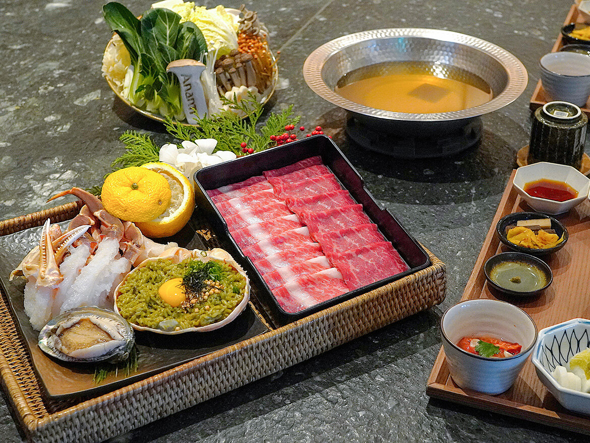 추운 겨울, 따뜻한 실내에서 즐기는 눈꽃 대게 샤브의 진한 국물과 풍미!