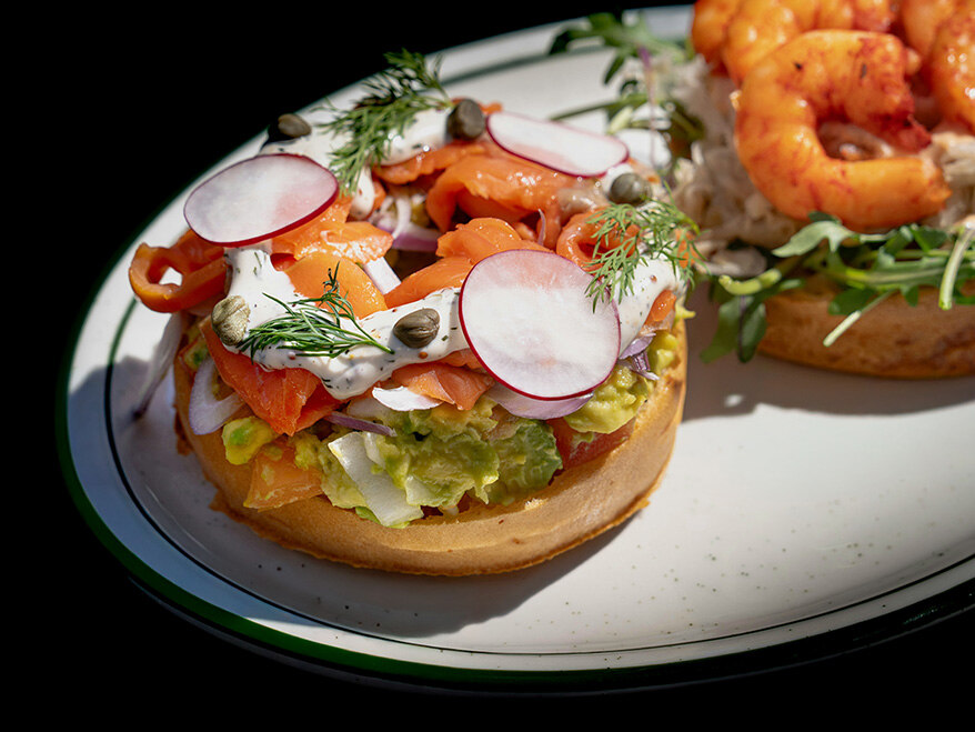'숲의 버터'라고 불리는 부드러운 아보카도 과카몰리 위에 훈제 연어를 듬뿍 올려