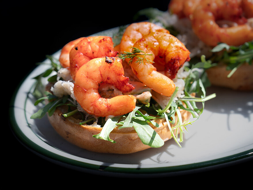 오븐에 로스팅한 탱글탱글한 새우에 마늘의 은은한 향이 매력적인 아이올리 소스와