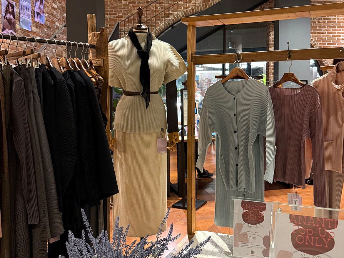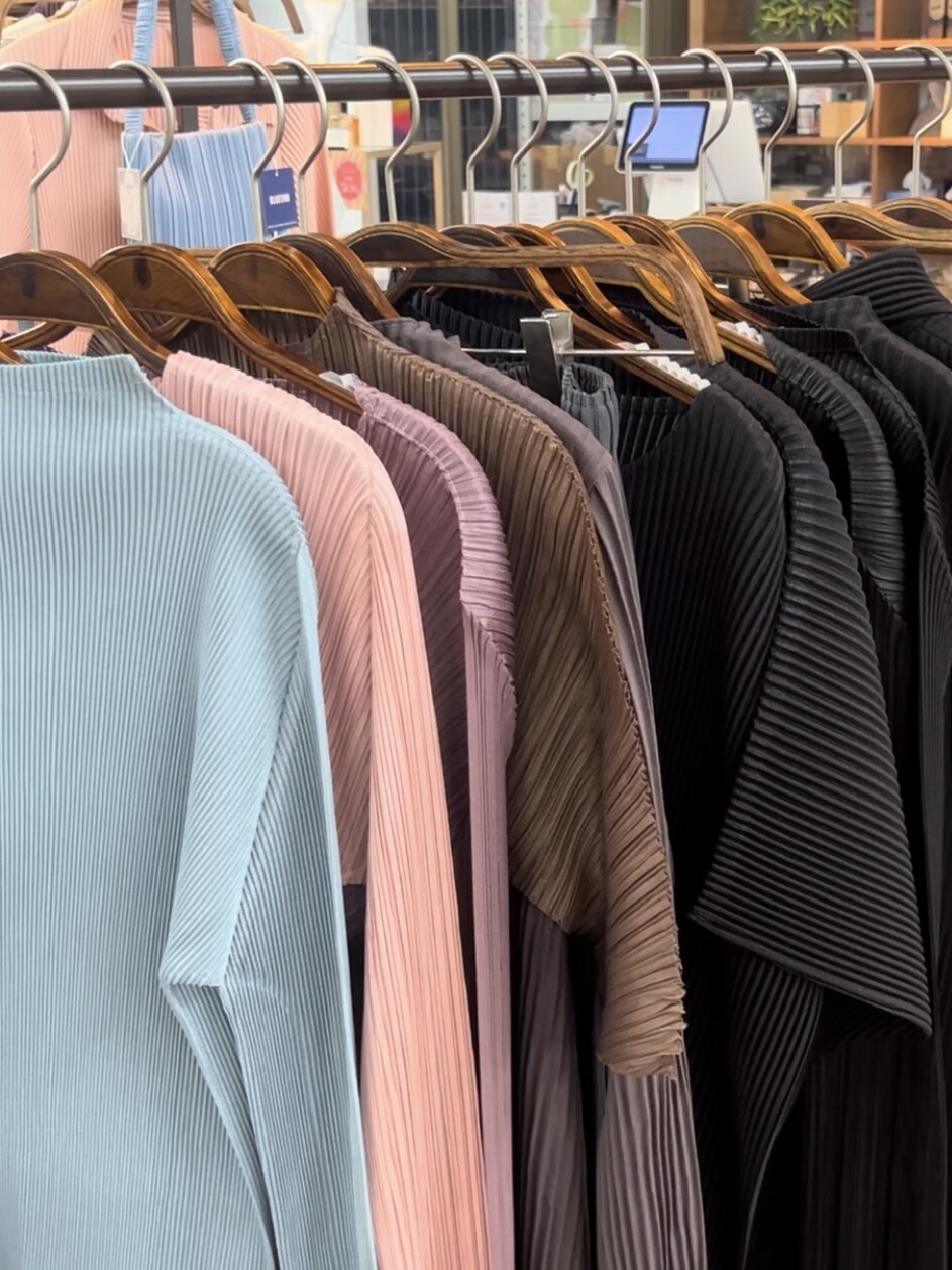 오삼삼은 플리츠 의류 브랜드로, 플리츠 디테일을 핵심 디자인 요소로 활용하는 것이 특징입니다.