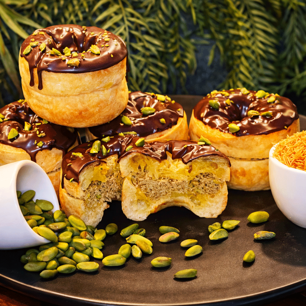 바삭하게 구운 카다이프와 부드러운 초콜릿이 겹겹이 어우러져