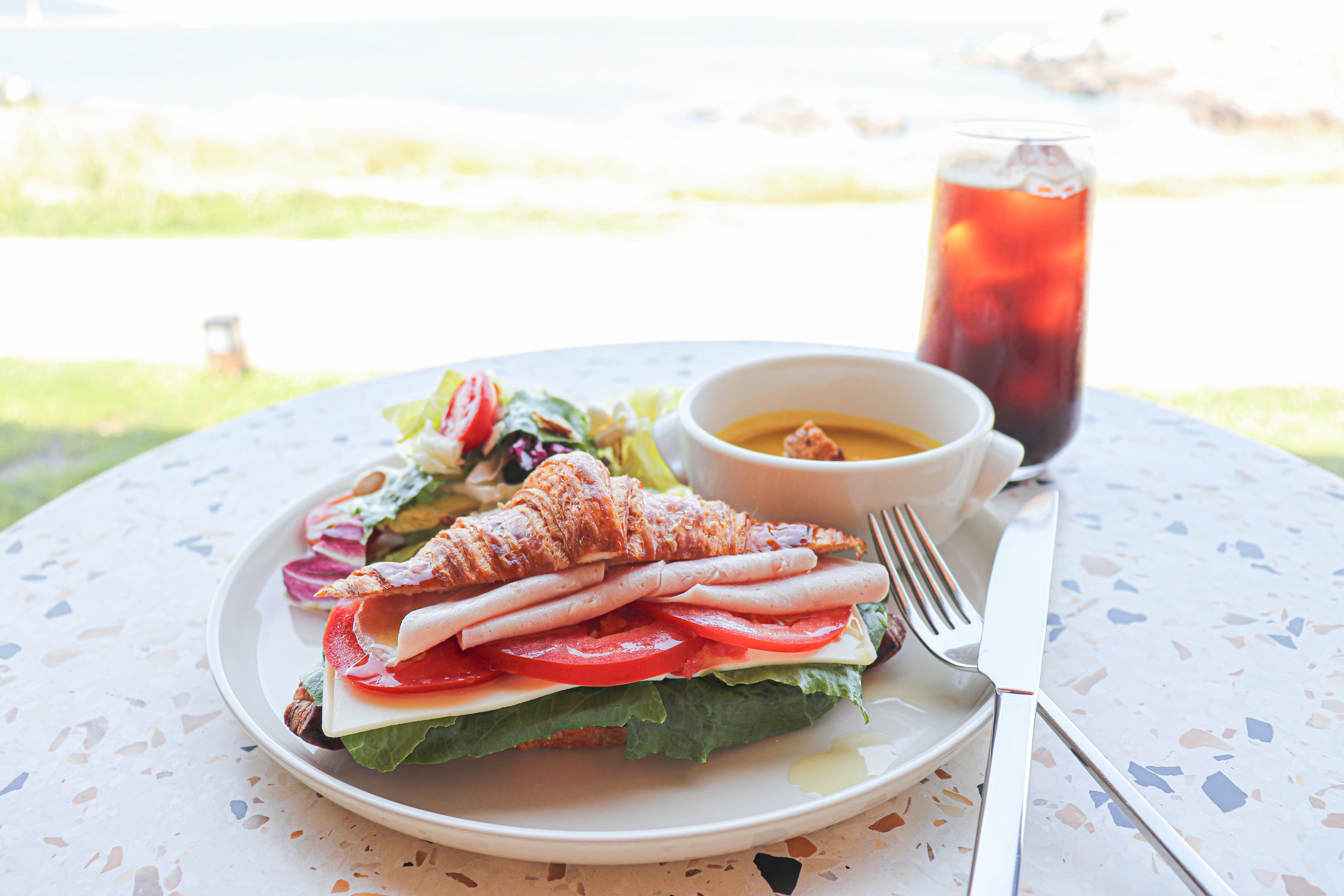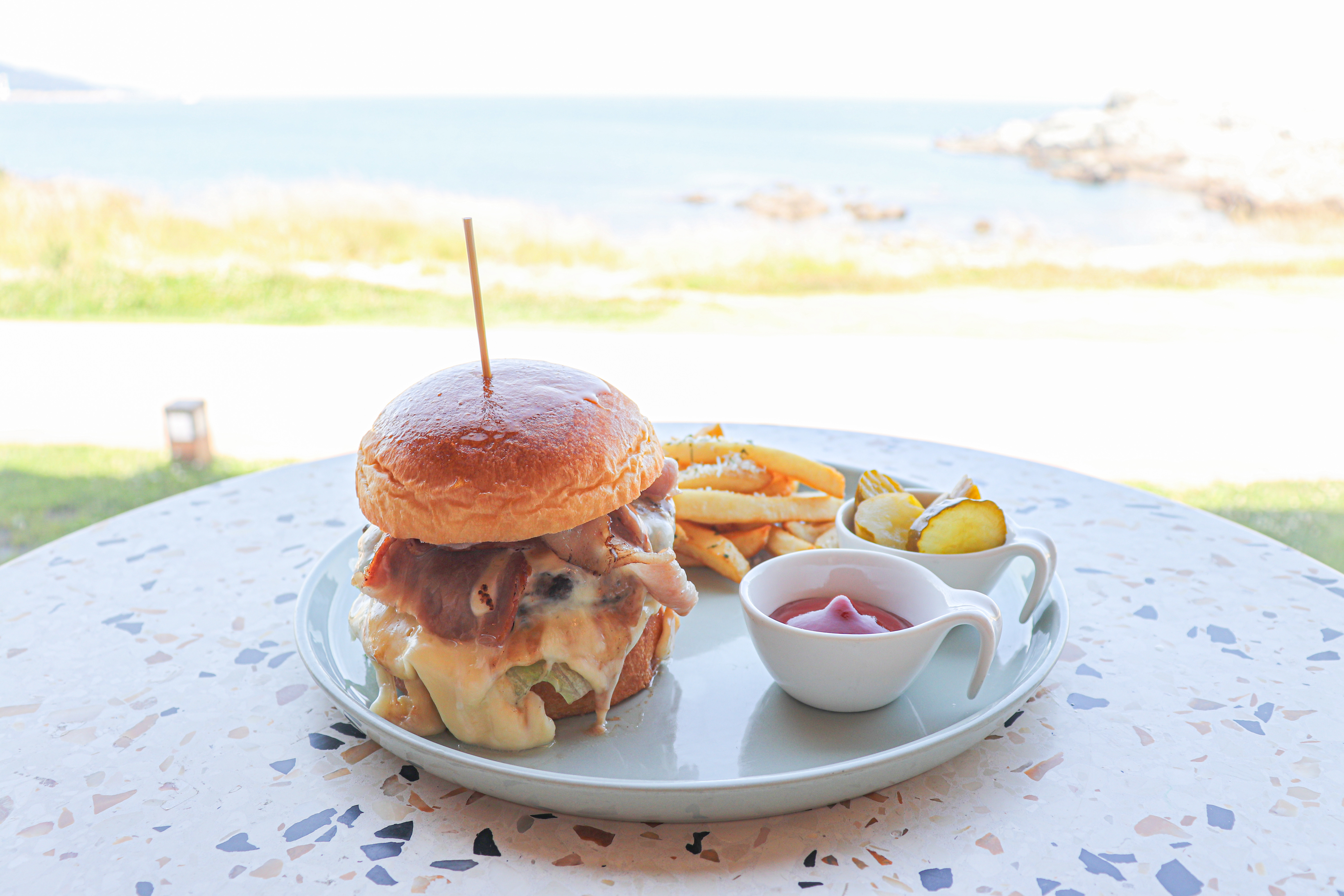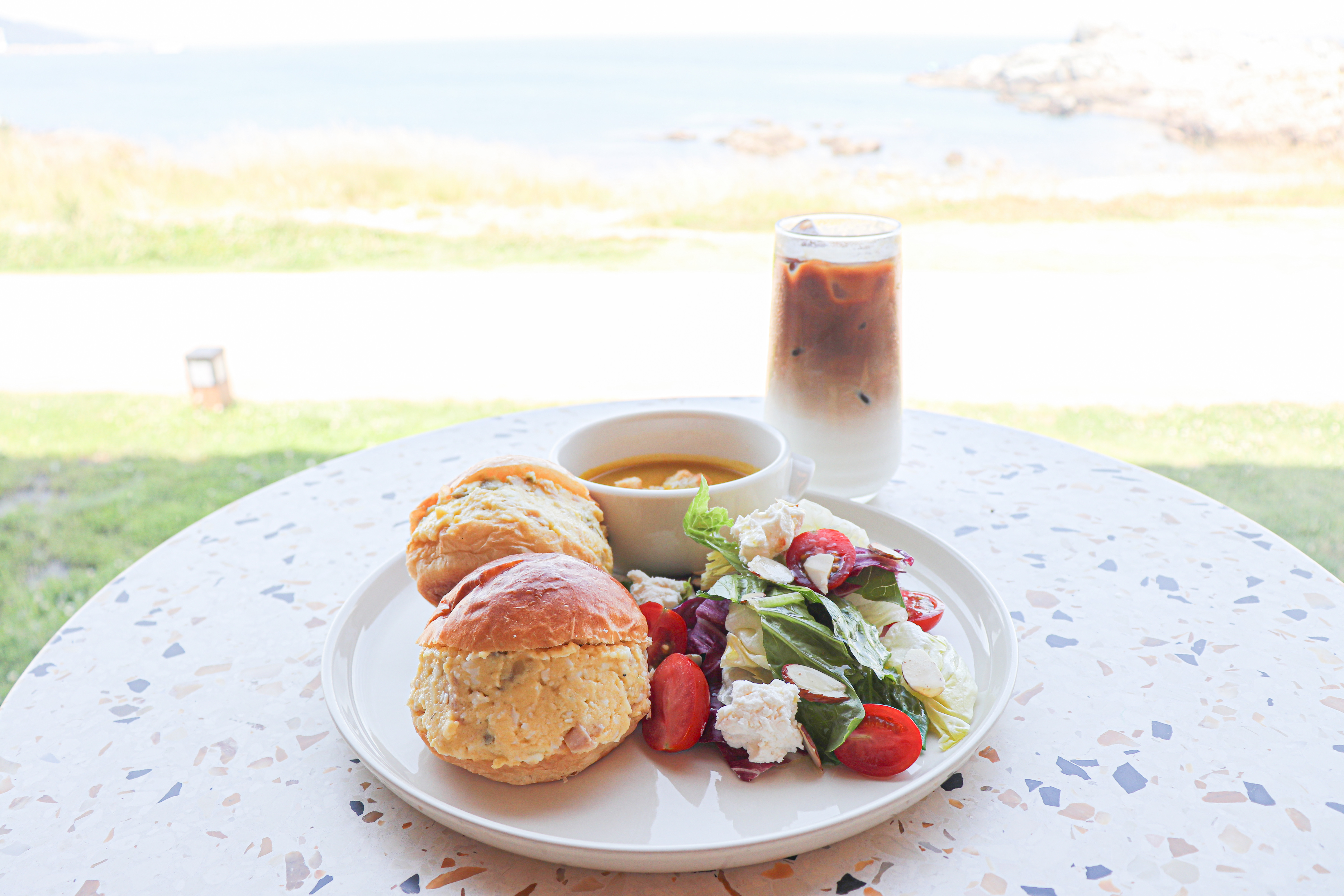 햇살이 내려앉은 오후에는 야외 테라스에 앉아 파도 소리를 들으며