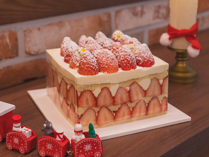 부드러운 생크림과 풍성한 생딸기가 가득한 홀리데이 쇼트 케이크.