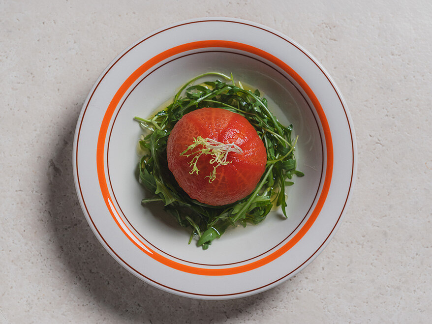 화이트 와인 시럽에 절인 토마토와 토마토 뷔용