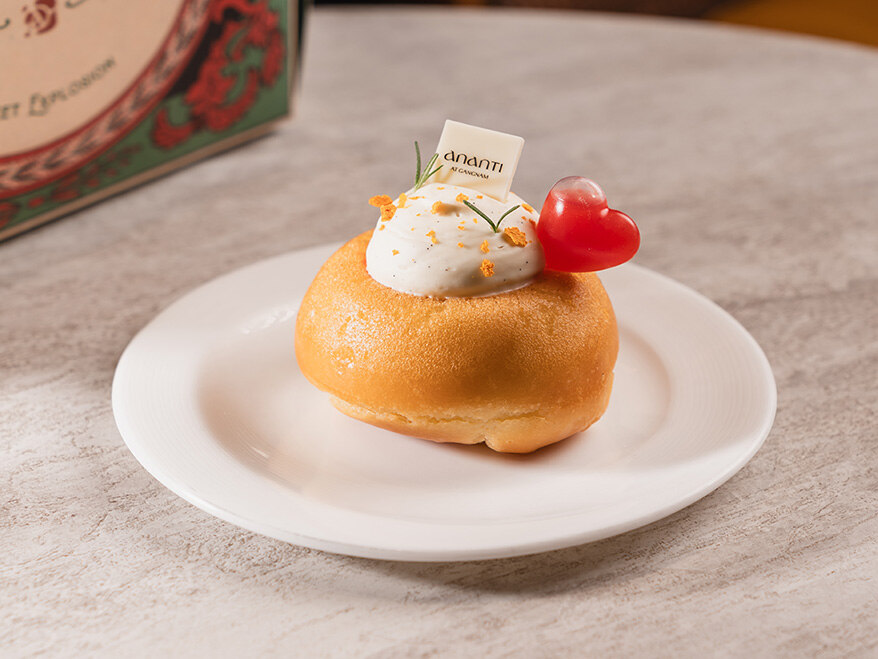 코앵트로 시럽에 적신 브리오슈에 자몽 시럽, 몽떼 크림이 어우러진 디저트