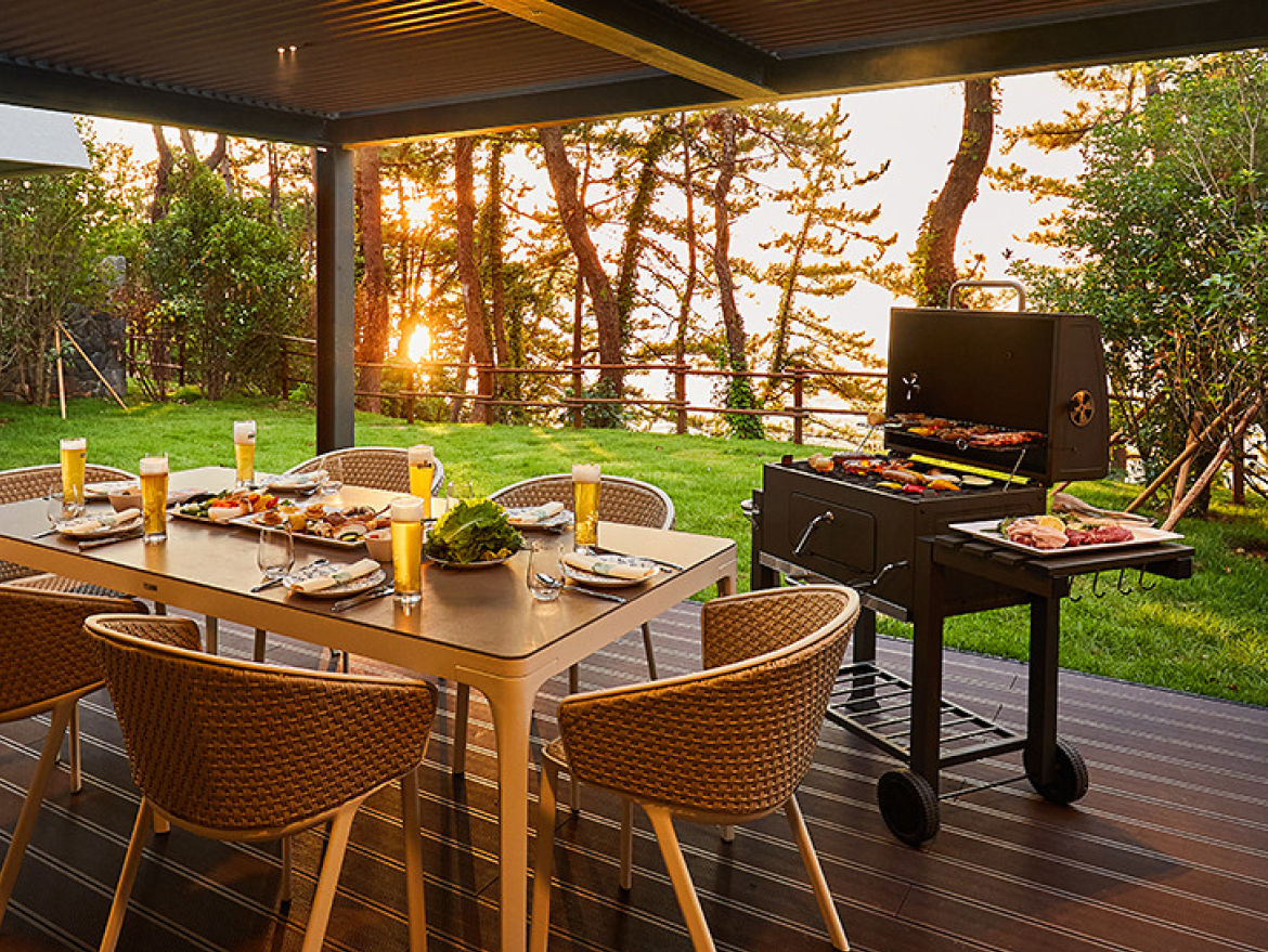 아난티 셰프가 손질한 다양한 종류의 육류와 해산물로 완벽한 가든 파티를 즐겨보세요.