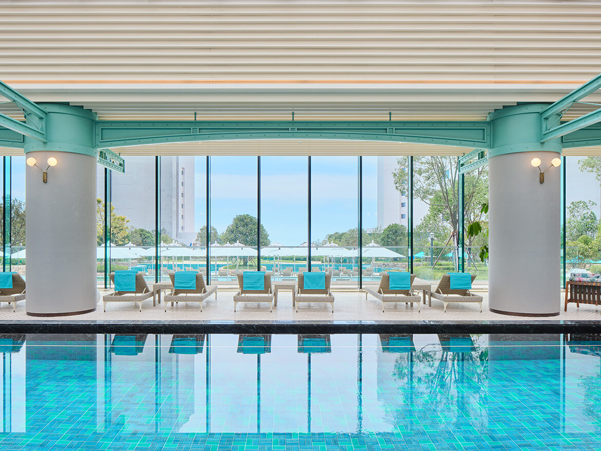 수영장과 야외 공원이 함께 있는 이국적이고 이색적인 풍경은