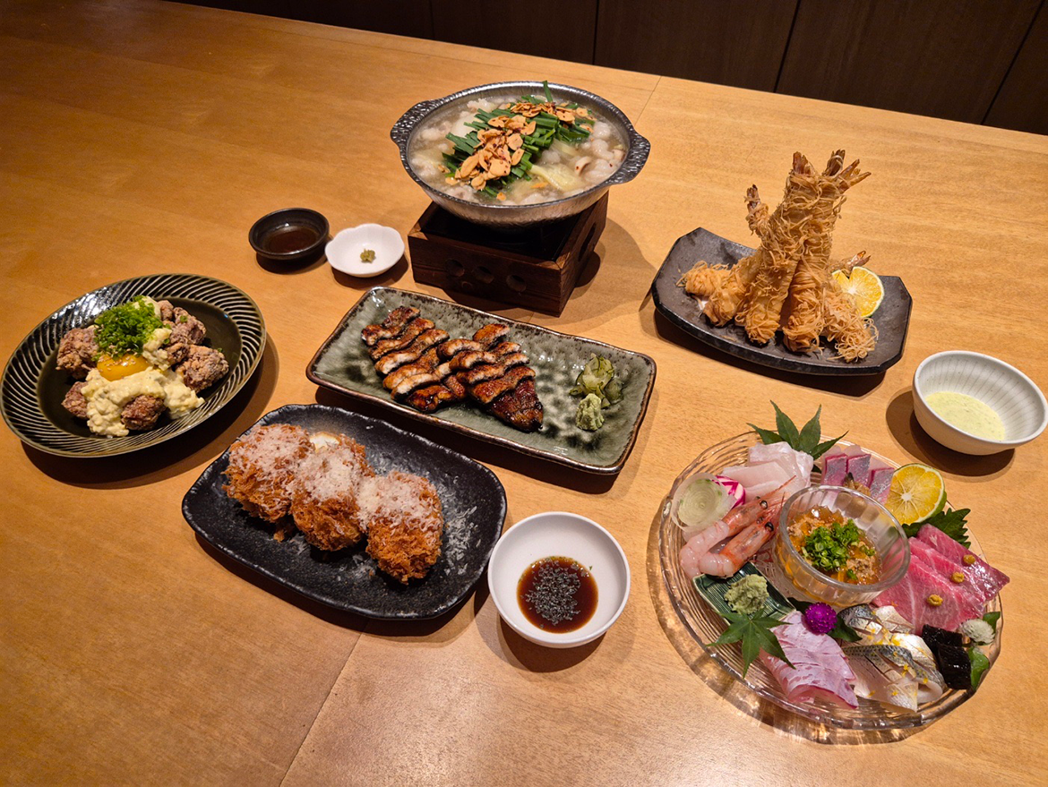 모둠 사시미와 장어구이, 김이 모락모락 오르는 모츠나베, 겉은 바삭, 속은 부드러운 크림고로케까지.